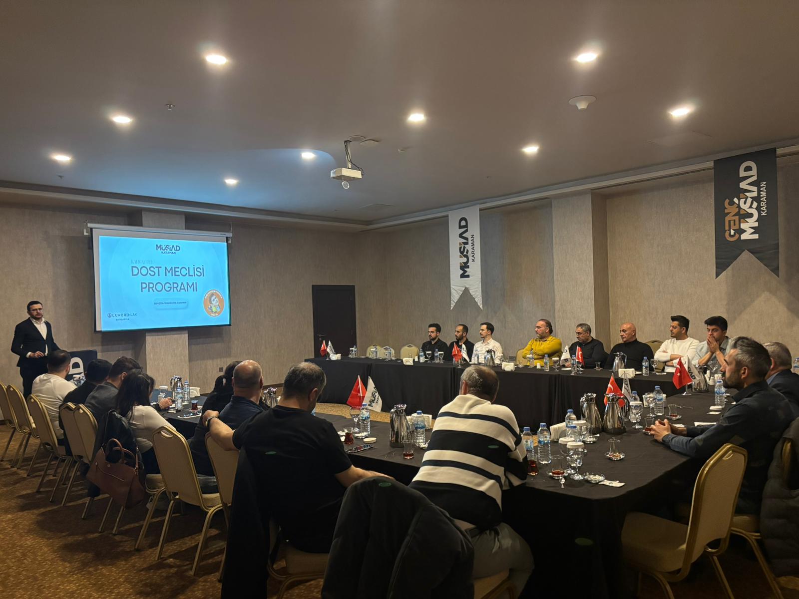 MÜSİAD Karaman üye firması Luxor Emlak sponsorluğunda düzenlenen kahvaltı programına MÜSİAD ve Genç MÜSİAD üyeleri katılım sağladı. Programın en anlamlı detayı ise elde edilen gelirin tamamının, Karaman’ın yakından takip ettiği DMD hastası Toprak Doğan’ın tedavisine bağışlanması oldu. Açılış konuşmasını yapan Şube Başkan Yardımcısı Ahmet Yıldızbaş ise üyeler arası kaynaşmanın önemine değinirken, Şanlıurfa ve Kahramanmaraş’ta okullarda yaşanan üzücü olaylara da değindi. Yıldızbaş, saldırılarda hayatını kaybeden öğretmen ve öğrencilere Allah’tan rahmet, yaralılara ise acil şifalar diledi.