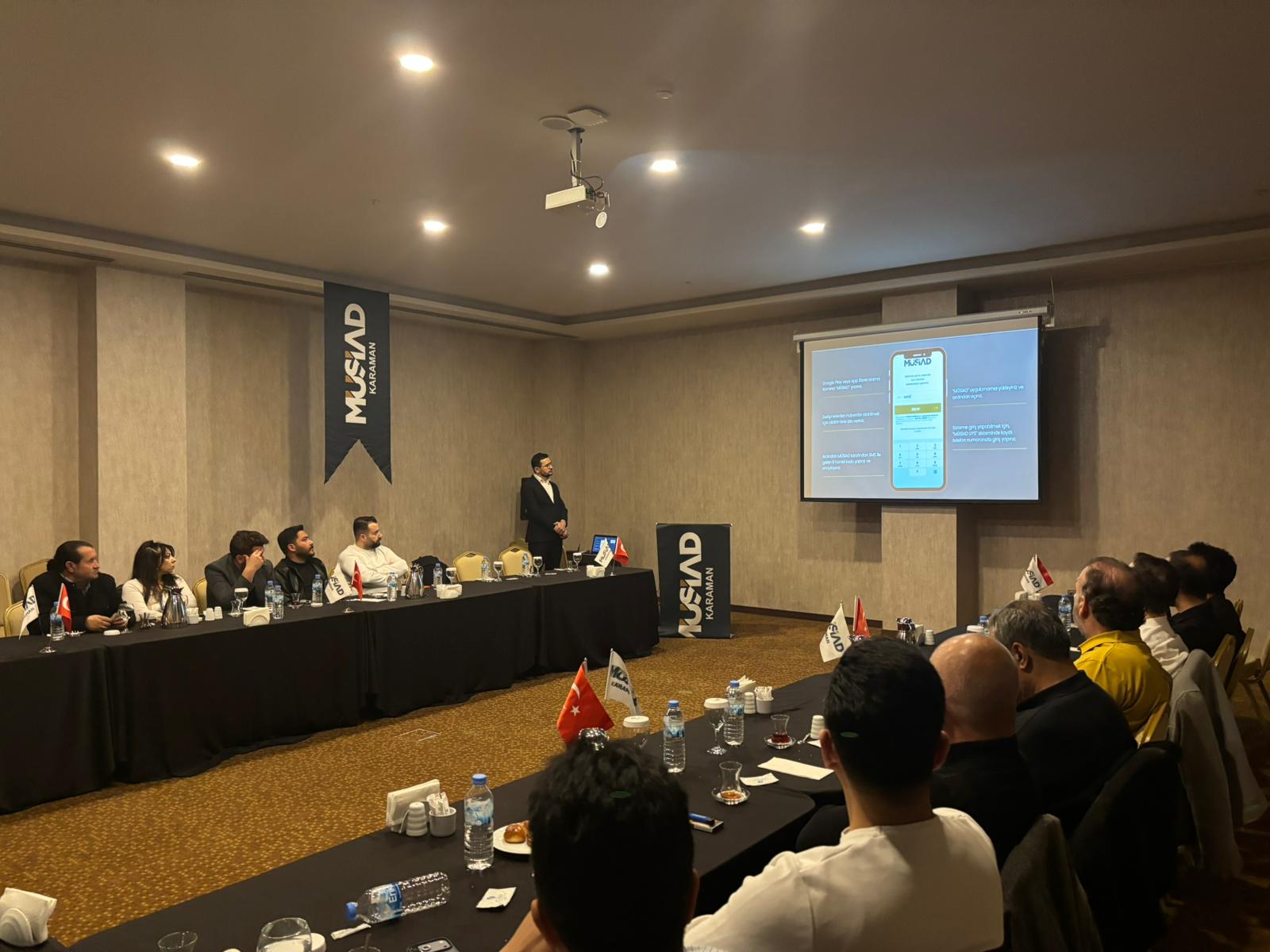 Kocaeli’de gerçekleştirilen Genel İdare Kurulu (GİK) sonuçlarına dair bir sunum yaptı. Üyelerin merakla beklediği tam donanımlı MÜSİAD Mobil Uygulaması'nın tanıtımı gerçekleştirildi. Aplikasyonun üyelere sağlayacağı kolaylıklar bir video eşliğinde anlatılırken, Eylül ayında düzenlenecek olan dev organizasyon MÜSİAD Expo Fuarı hakkında da bilgilendirme yapıldı.